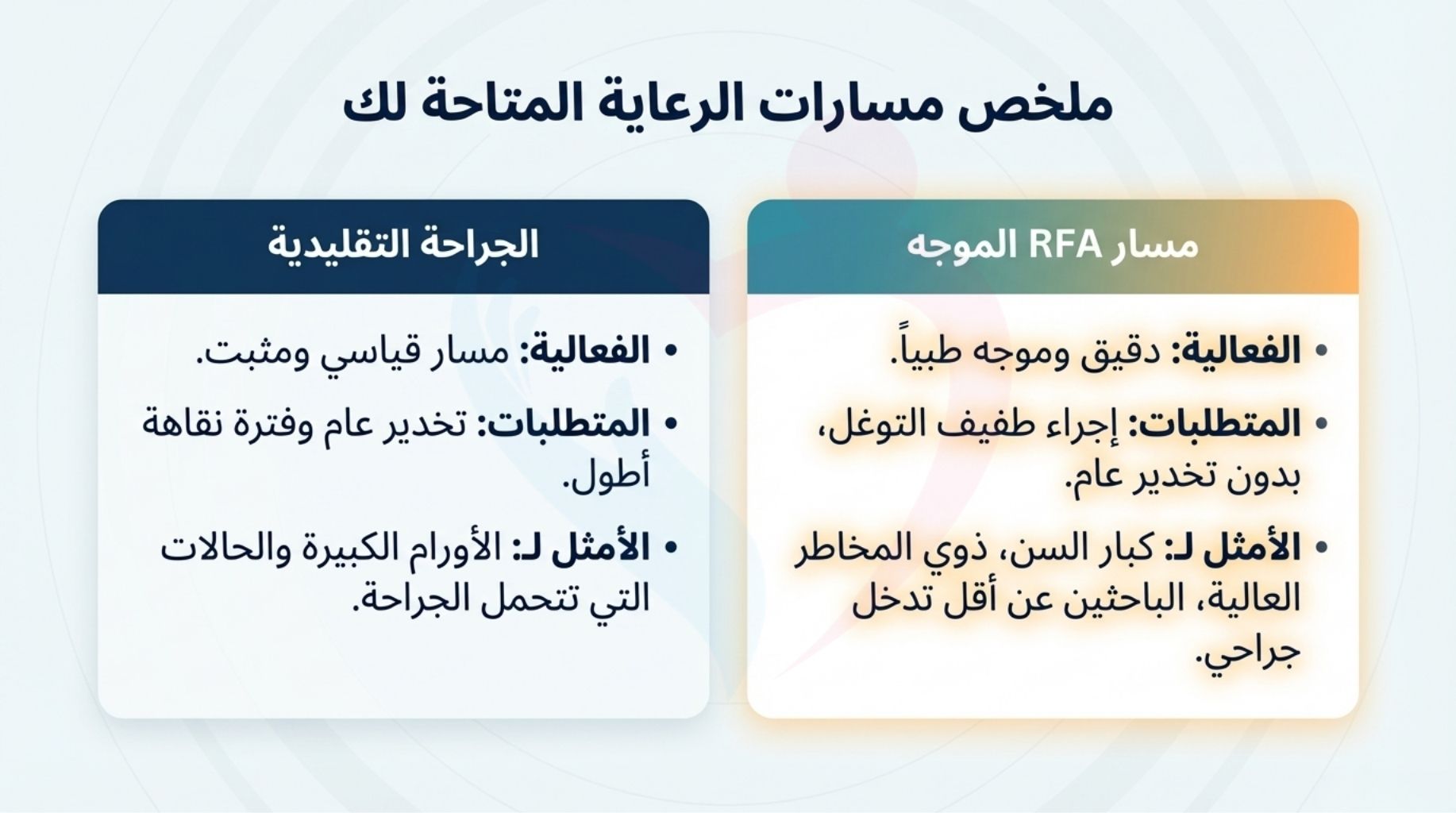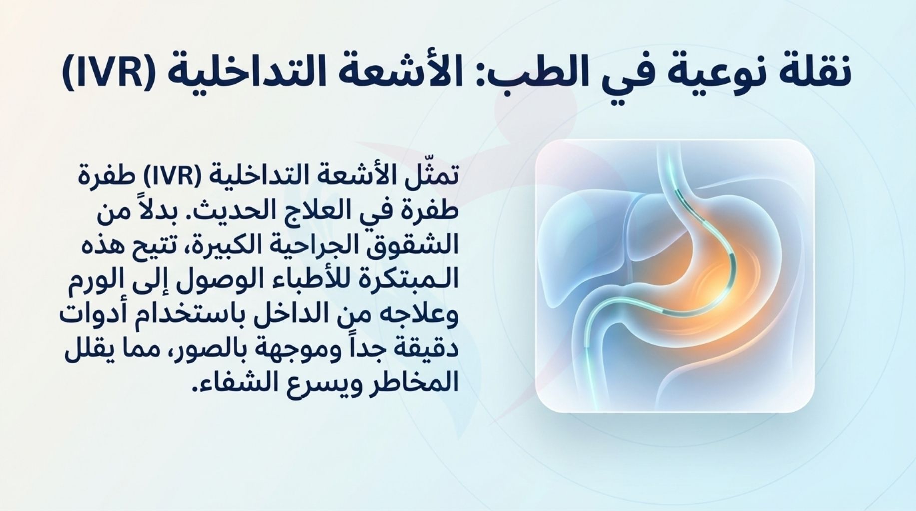 * يجب على كل مريض استشارة طبيبه المختص لتقييم حالته الصحية وتحديد مدى ملاءمة تقنيات الأشعة التداخلية (IVR) أو الترددات الراديوية (RFA) لظروفه الخاصة.