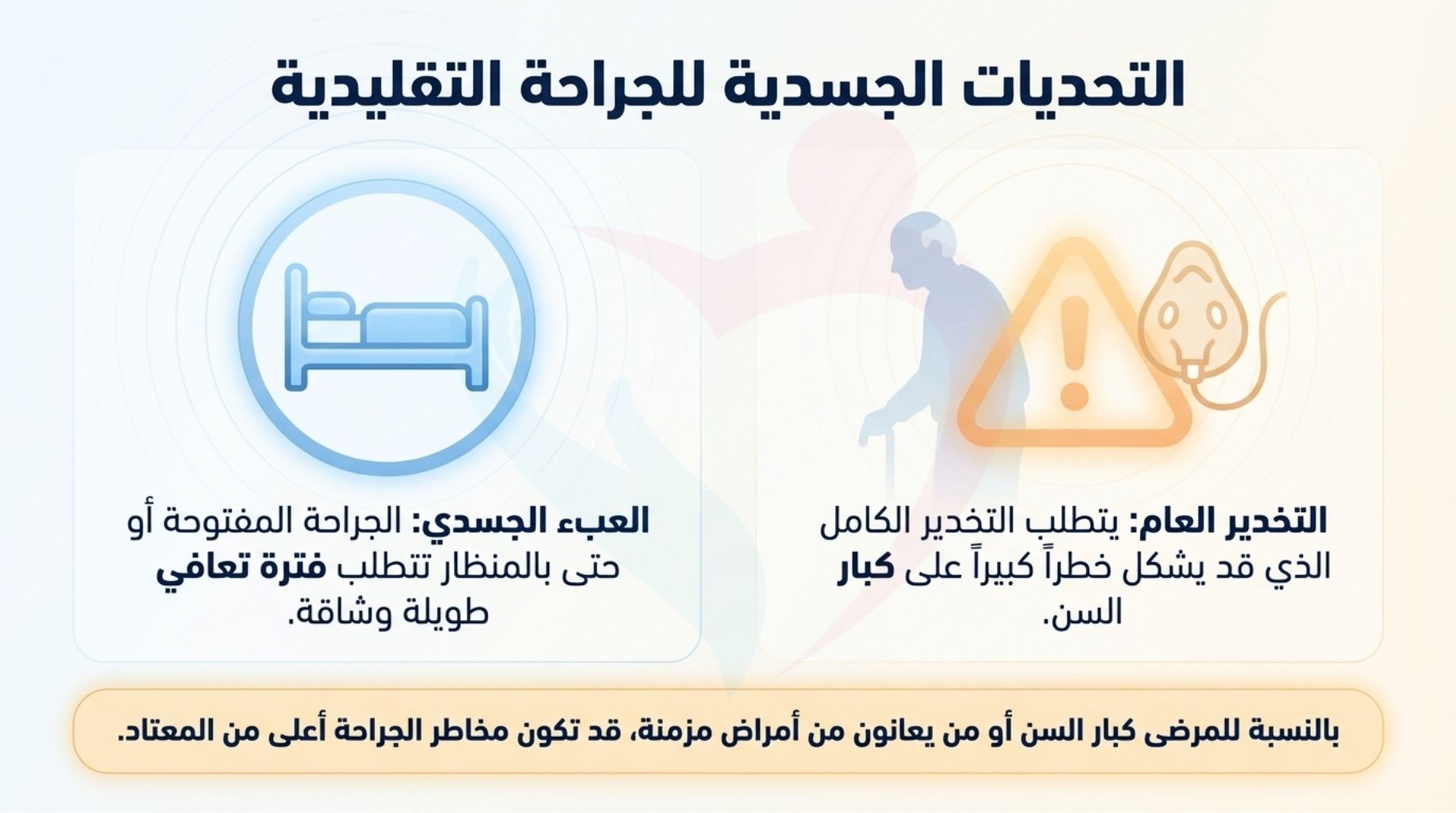 * خيار آمن وفعال للمرضى الذين لا تحتمل حالتهم الصحية العامة أو وظائف أعضائهم إجراءات جراحية كبرى، مما يمنحهم فرصة للتعافي دون مضاعفات الجراحة التقليدية.