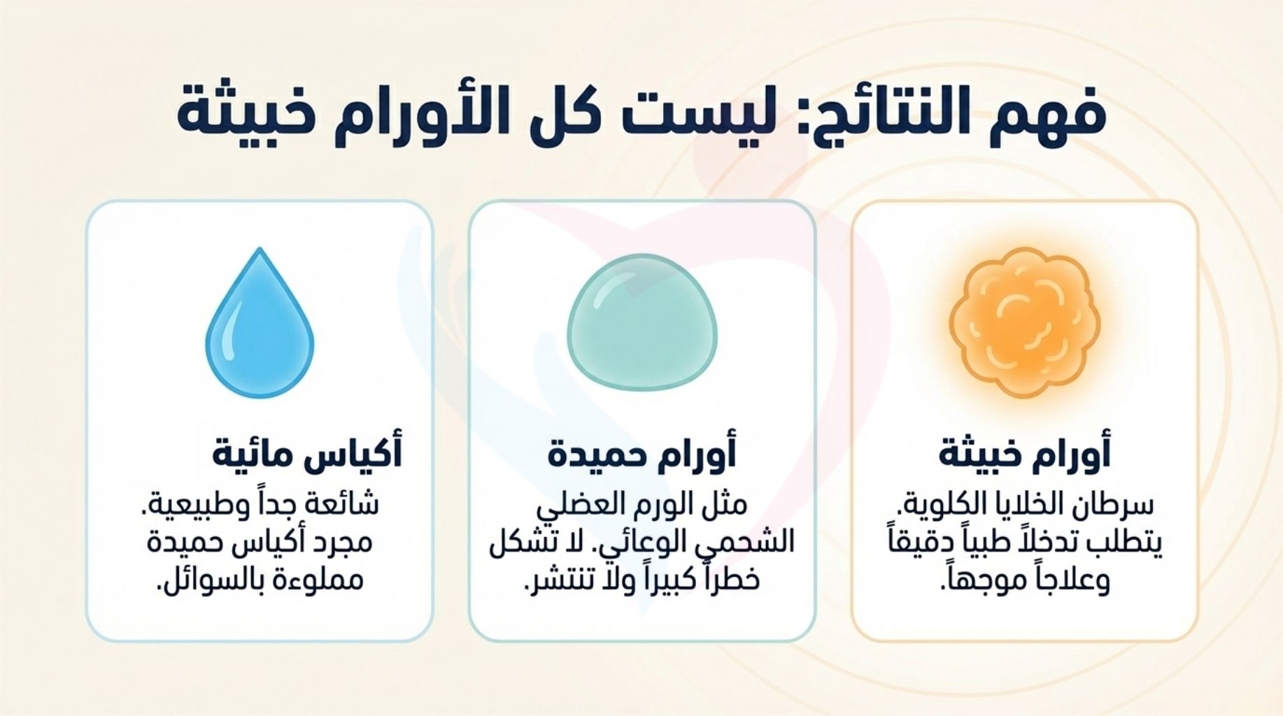 * التمييز بين الخبيث والحميد: من الضروري جداً التمييز بين السرطان وبين الأورام الحميدة مثل "الورم الوعائي العضلي الدهني".