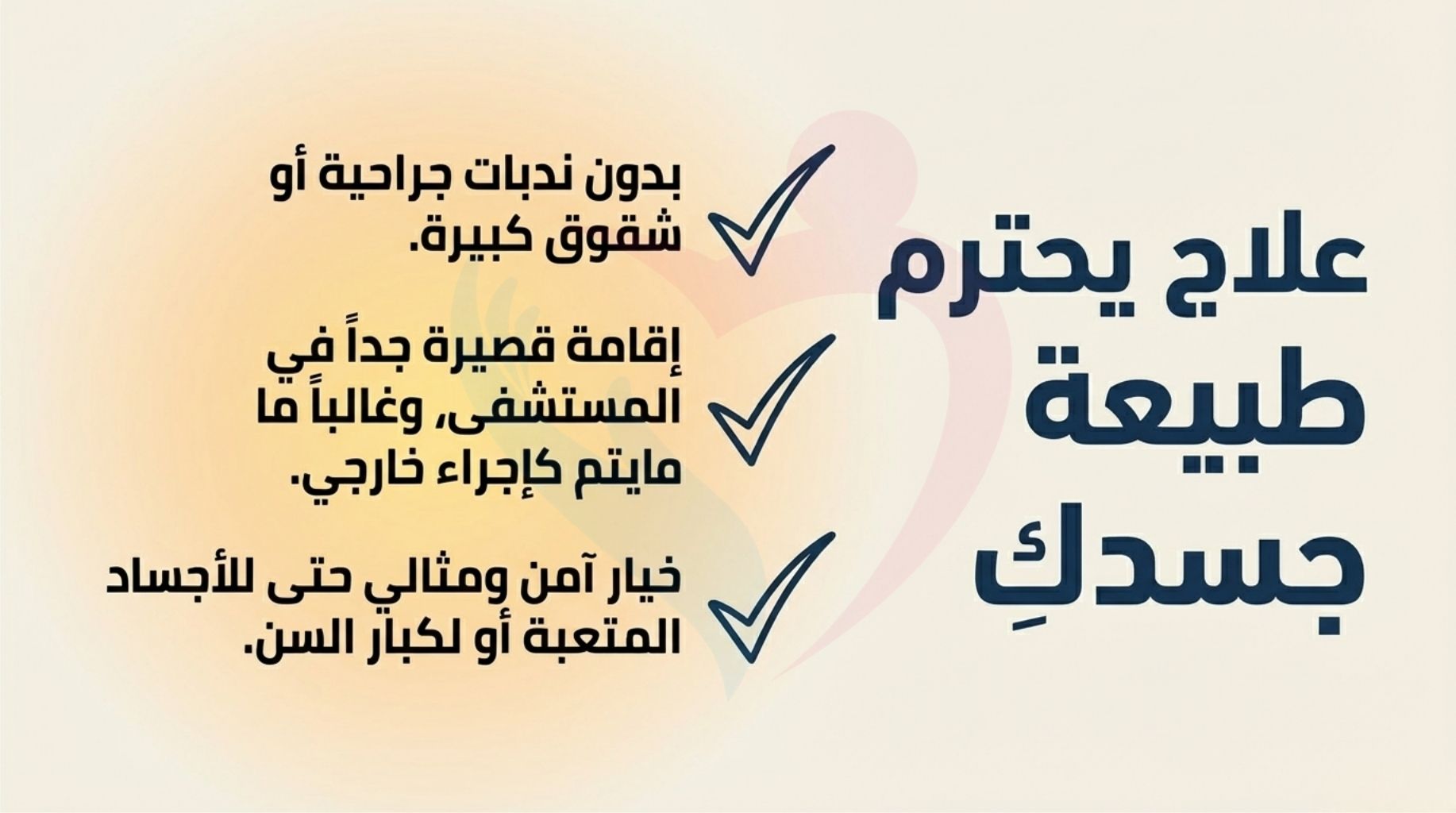 * الحد الأدنى من التدخل الجراحي: يُجرى تحت تخدير موضعي أو مهدئ، مما يجعله الخيار الأول للمرضى كبار السن أو من يعانون من ضعف الحالة البدنية العامة.