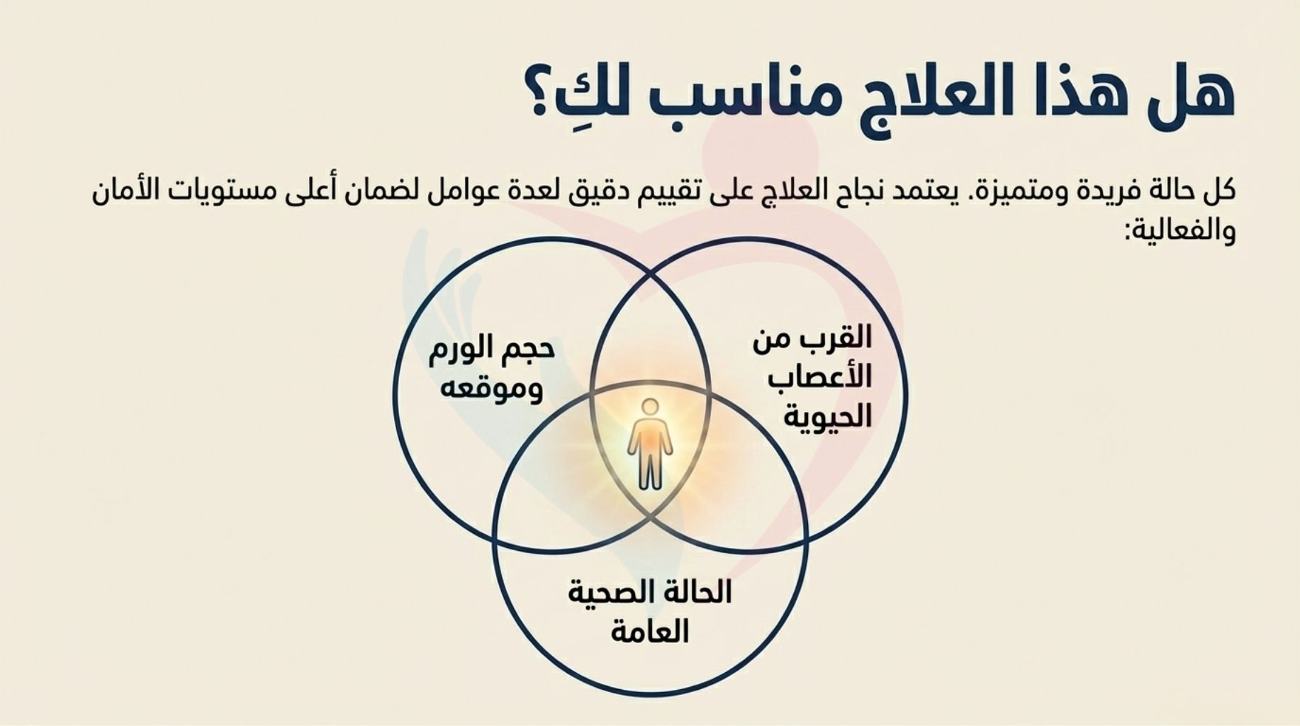 ومع ذلك، تظل الاستشارة التخصصية هي المفتاح؛ حيث يجب تقييم حجم الورم وموقعه بدقة مقارنة بالأعصاب الحيوية لتحديد مدى ملاءمة الحالة لهذا الإجراء.