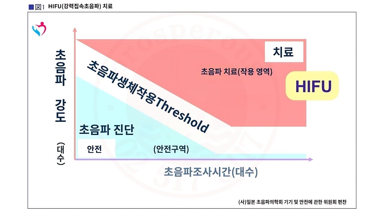 강력 집속 초음파로 번역되는 HIFU는 'High-Intensity Focused Ultrasound'의 앞글자를 딴 것으로 '하이프'라고 읽습니다.통상, 의료 분야에 있어서의 초음파는 화상 진단에 사용되고 있습니다만, 초음파를 집속시키는 것으로 강도를 높여 조사하는 시간을 길게 하는 것으로, 치료에 응용한 것이 HIFU 요법입니다(그림 1).
