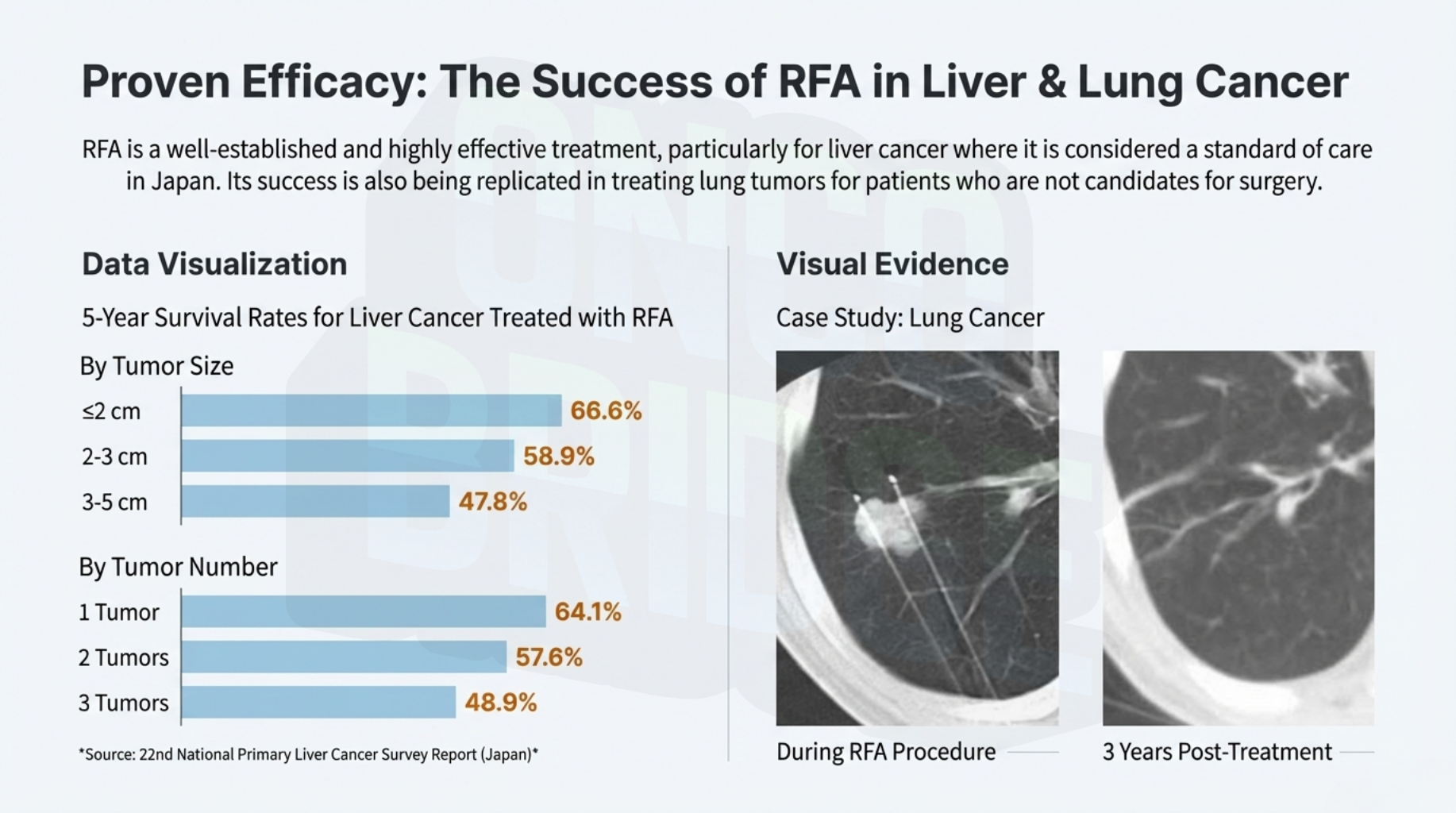The survival statistics for these procedures are excellent. For example, liver RFA shows a 1-year survival rate of 94–96%.