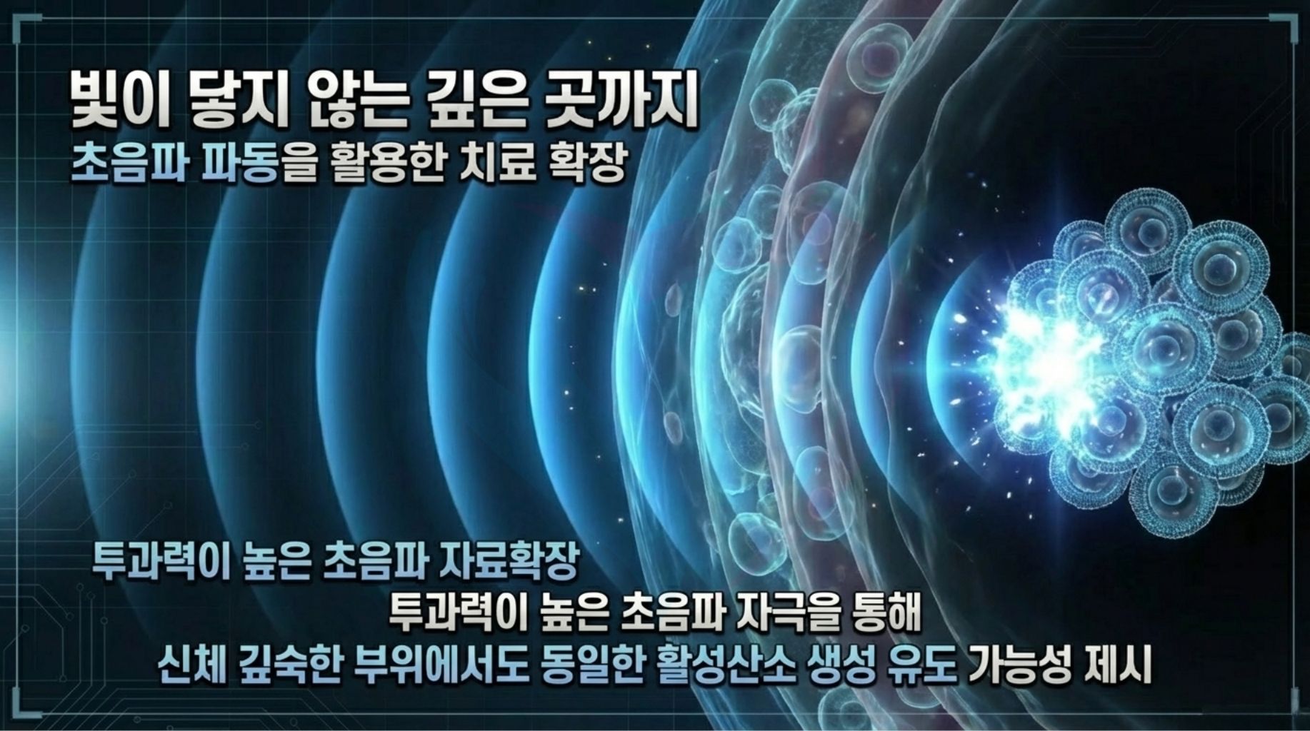 - 빛은 체내에서 약 1~2cm 정도까지만 도달할 수 있지만, 초음파는 수십 cm까지 깊게 침투하므로 몸속 깊은 부위 암을 치료할 때 광면역 암치료에서 주로 사용된다.