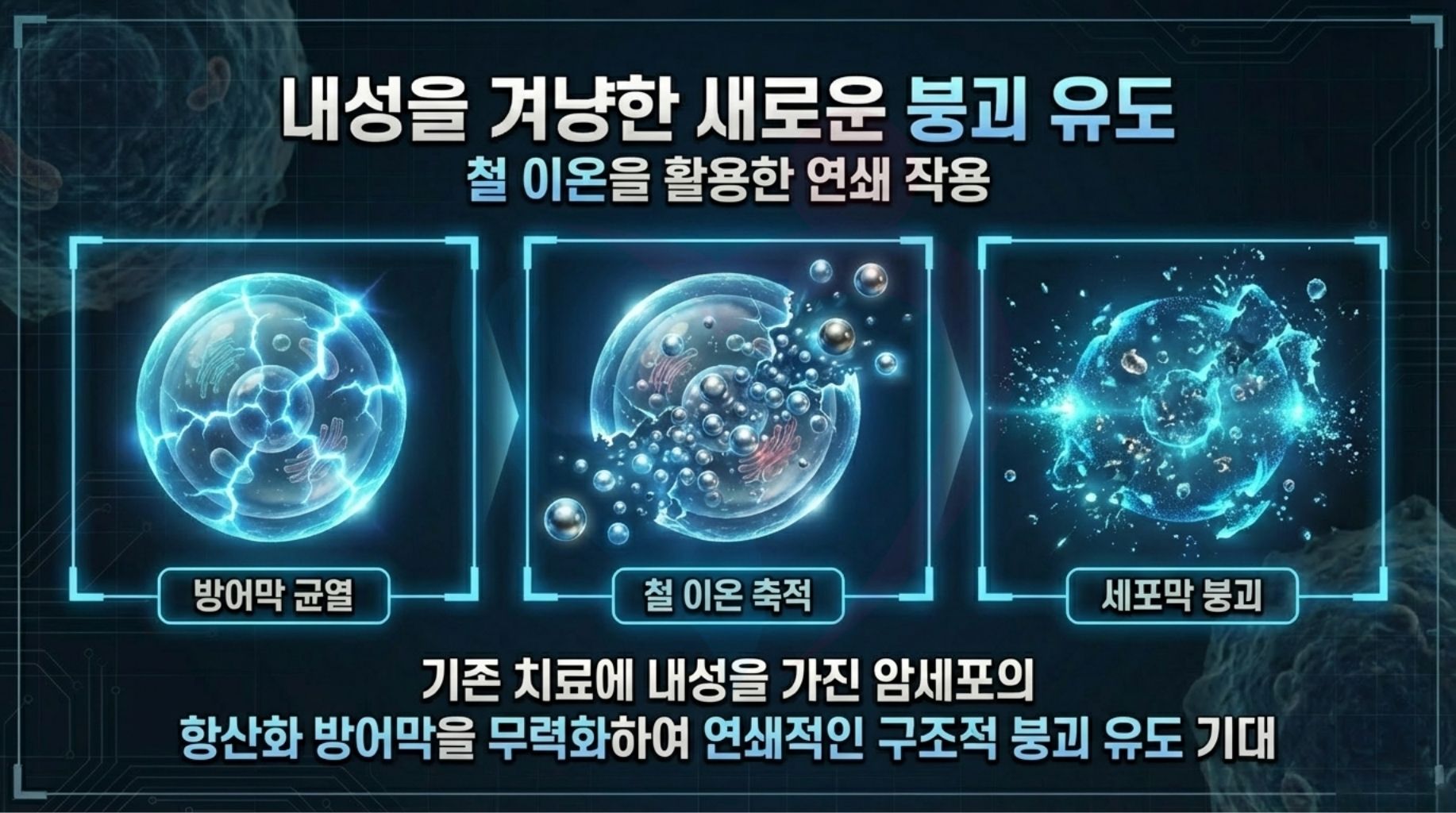 페로토시스는 기존 항암제에 강한 내성을 지닌 암세포에도 효과적이기 때문에, 난치성 재발암 치료에서 광면역 암치료의 결정적 대안으로 주목된다.