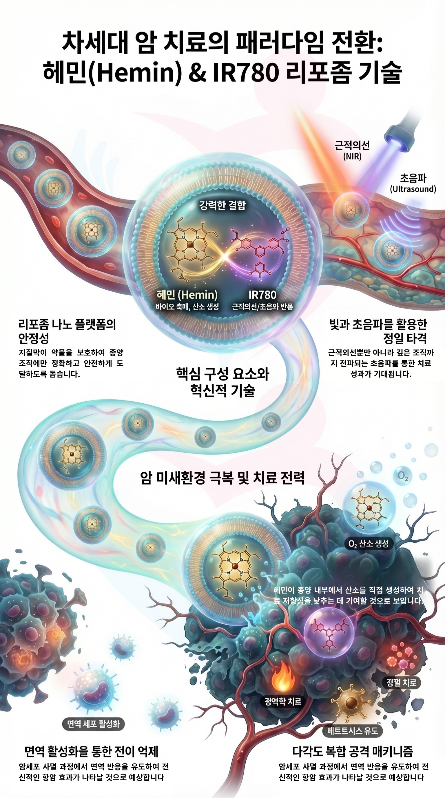 2024-2025년 최신 연구에서, 헤민과 IR780을 포함한 리포솜이 단일 치료법을 넘어서는 다기능 정밀 폭탄으로 자리 잡았다.
